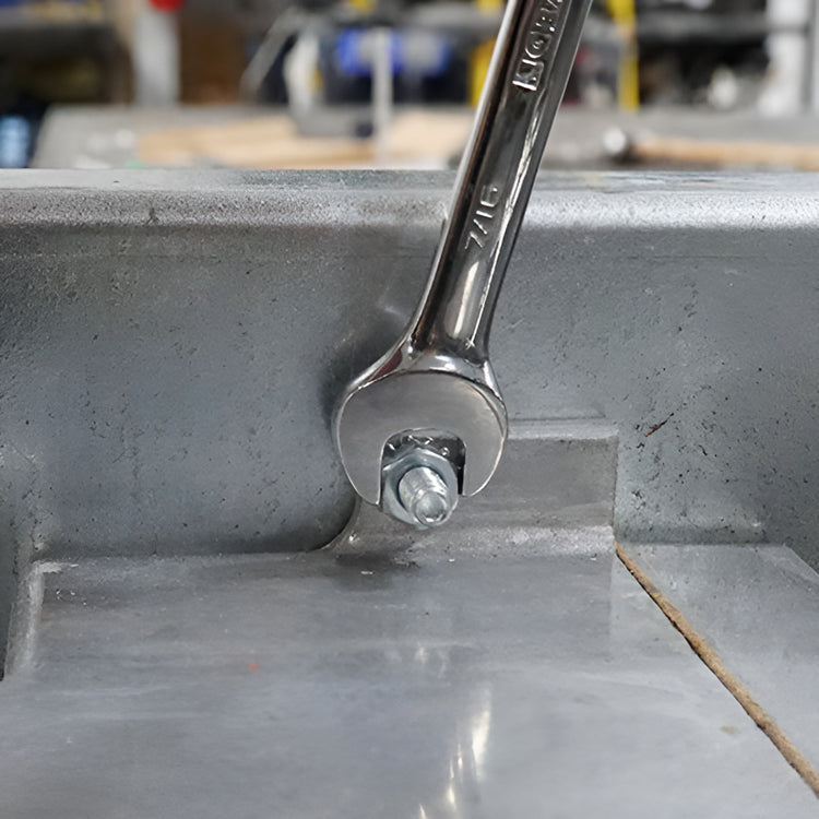 To tighten the drive chain, you will want to use a 9/16th wrench and loosen the 4 nuts as pictured below. Once they are loosened, let the weight of the motor put tension on the chain and then tighten the nuts back.